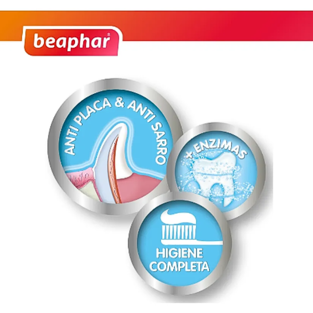 Mojar el cepillo antes de usarlo. Aplicar pasta de dientes y cepillar suavemente todos los dientes hasta que estén limpios. Para una limpieza óptima y un aliento fresco, se recomienda utilizar la pasta de dientes Beaphar. El dentífrico Beaphar no necesita aclarado. Es aconsejable cambiar el cepillo de dientes cada 3 meses o antes si es necesario.
